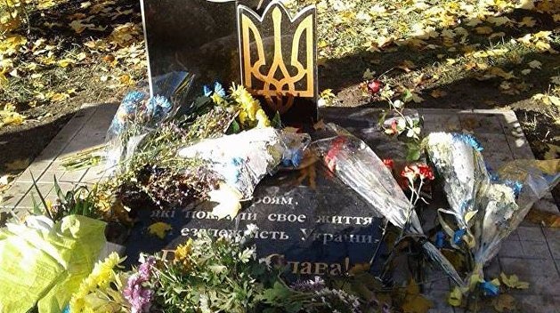 Украинскими СМИ сообщается, что "злоумышленники" оторвали от могилы убитым "героям АТО" плиту с красно-черным флагом. Бандеровским, разумеется. Памятник был установлен по инициативе членов "союза ветеранов и воинов АТО" 13-го октября.