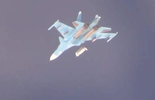 Многофункциональный сверхзвуковой российский истребитель-бомбардировщик Су-34 нанес мощный удар по украинским боевикам, сконцентрированным в Сумской области Украины на границе с Курской областью.Самолет сбросил на врага авиационную бомбу ФАБ-3000 с УМПК, уничтожив большое количество живой силы и техники неприятеля.