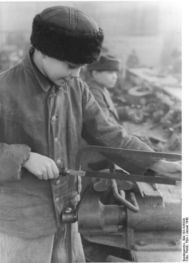 Девушка-остарбайтер с нашивкой «OST», освобожденная из лагеря содержания под Лодзью