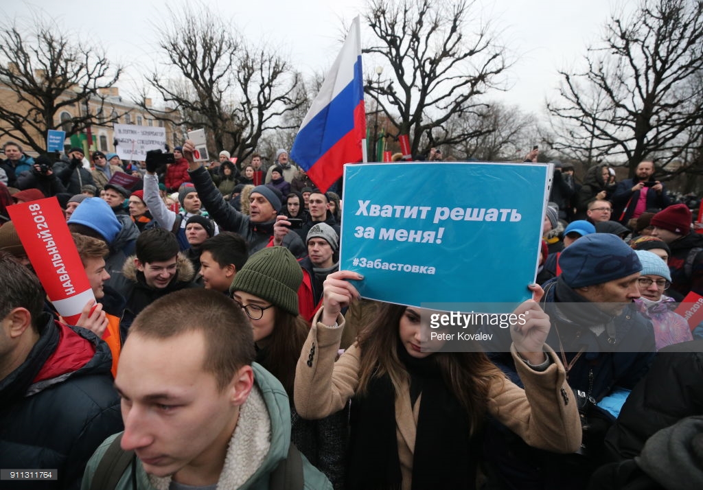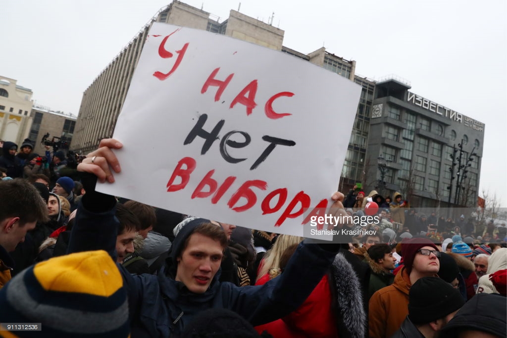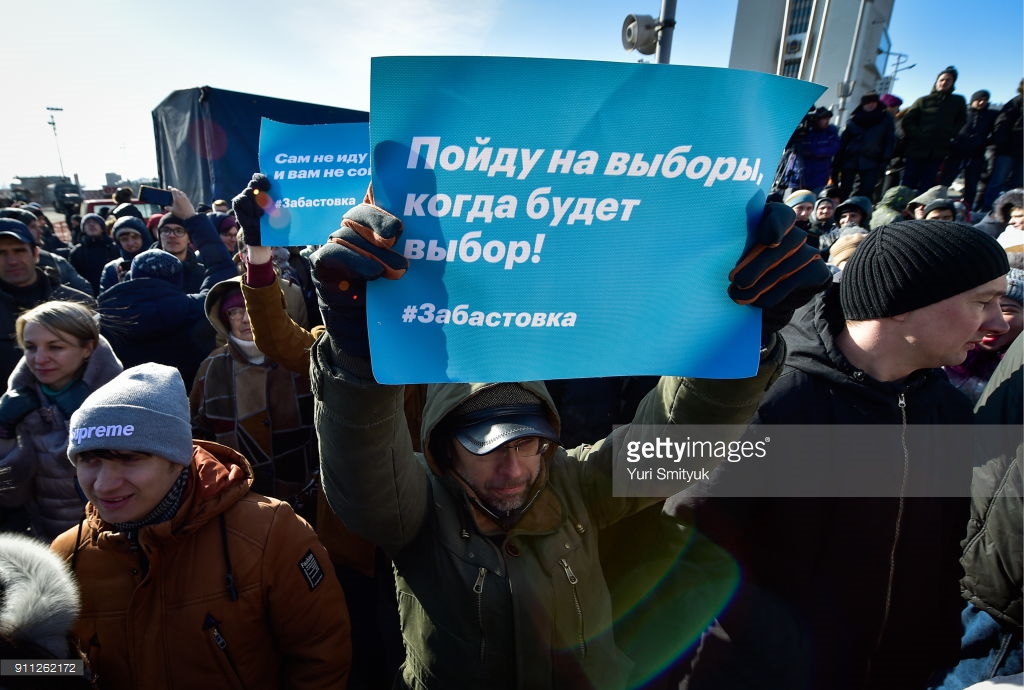 Сегодня по всей России проходят массовые уличные акции, направленные против фальсификаций на предстоящих президентских выборах. По словам тех, кто вышел на улицы российских городов — власти нарушили их избирательное право тем, что не зарегистрировали в качестве кандидата в президенты Алексея Навального (который мог бы стать сильной альтернативой Путину), а без Навального выборы не имеют смысла — в списках кандидатов остался только Путин, ещё раз Путин и "старая гвардия" вроде Жириновского и Зюганова.