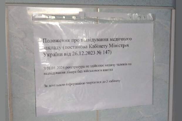 С 2024 года на Украине нельзя будет попасть к врачу без военного билета.