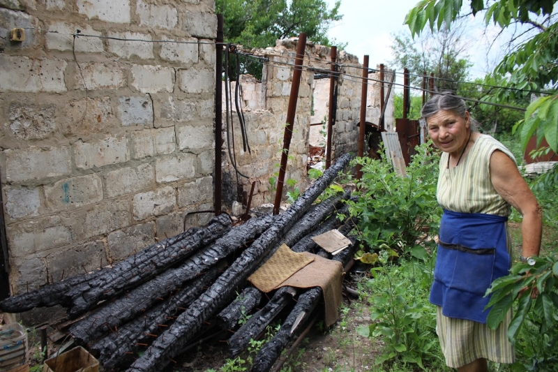 Ещё в самом начале войны во дворе дома сгорел гараж, а в нём – машина внука, его велосипед, и вся хозяйственная утварь. Обстрел начался поздно ночью. Напротив гаража стоял стог сена. ВСУ стреляли зажигательными боеприпасами; сено вспыхнуло мгновенно, следом за ним – гараж. Как ни пытались потушить огонь – ничего не выходило. Лили воду, а огонь от этого разгорался ещё сильнее. Шёл многочасовой обстрел, пожарные не ехали. В итоге гараж превратился в руины. Особенно бабушке Ксине жалко машину внука, накануне парень собирался приехать из Харькова её забрать, но не сложилось.