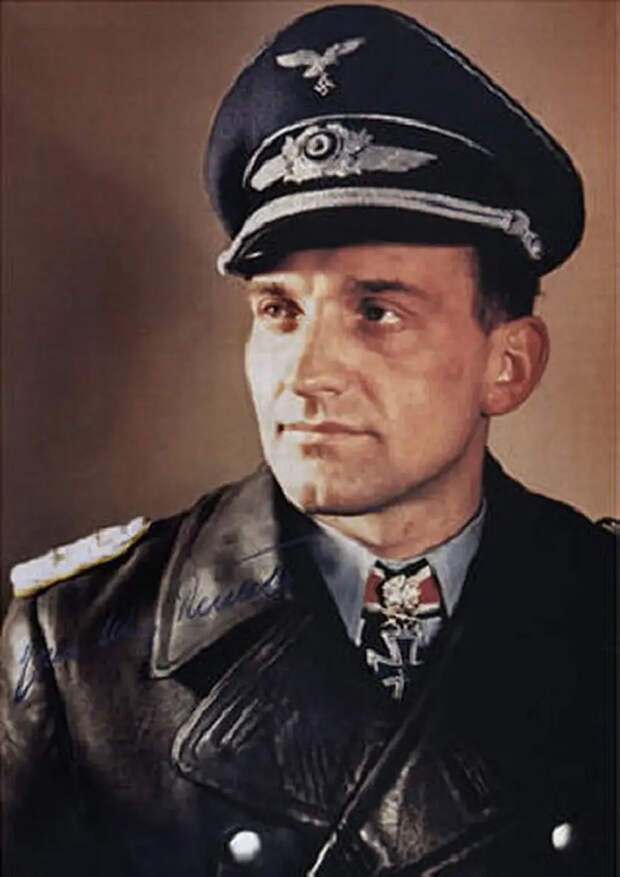 Вот он – единственный награжденный Рыцарским крестом с золотыми дубовыми листьями, мечами и бриллиантами Ганс-Ульрих Рудель. По его словам, уничтожил 519 танков, 800 автомобилей, 150 орудий, четыре бронепоезда и повредил линкор «Марат» в Ленинграде. Разве ему Гитлер не пожаловал бы поместье с замком и виноградником где-нибудь в живописном районе Франции?