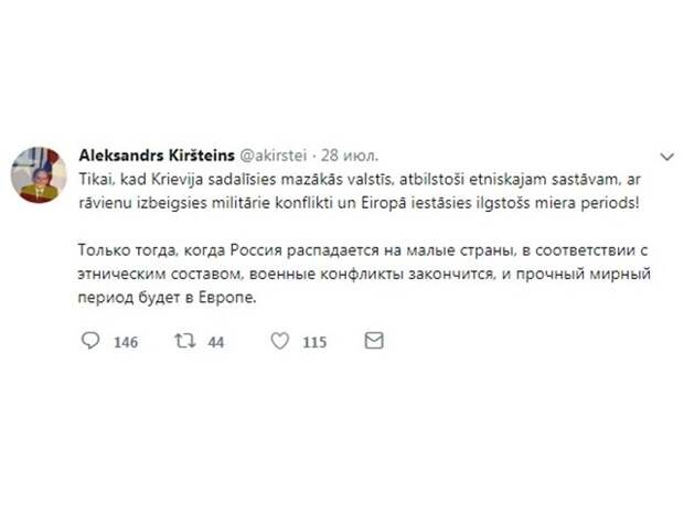 В нашей истории был достаточно длительный временной пласт, когда земли были разрознены, раздроблены. Когда каждый князь воевал за себя, за лучший стол и земли. Это примерно то, что хочет видеть в России эта ошибка природы, родившаяся, кстати, в СССР, по фамилии Кирштейнс.
