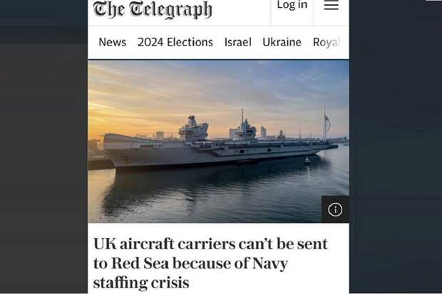 Англичане не смогли развернуть авианосную группировку в Красном море для ударов по хуситам. Без авианосца авианосная группировка недостаточно авианосна.