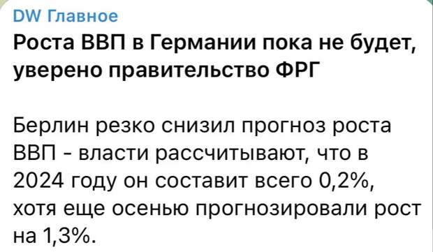 Роста ВВП в Германии пока не будет, уверено правительство ФРГ
