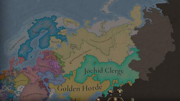 Как и Золотая Орда, которая в реальной истории прекратила существование в районе 1480 года, а там продолжает нависать и доминировать (и не разваливается от внутренних противоречий, как должна).