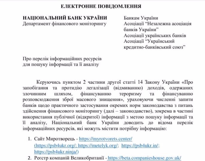 Отметим, накануне Национальный банк Украины рекомендовал своим клиентам использовать сайт «Миротворец» для анализа заемщиков. Об этом сообщил финансовый эксперт, экономист, автор ТВ-программы "Гроши" Александр Дубинский в Facebook.