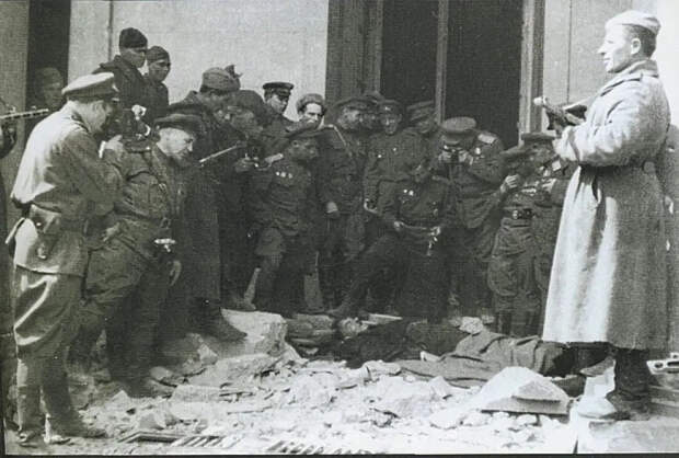 Германский фюрер Адольф Гитлер 22 апреля 1945 г. заявил своему окружению, что война проиграна. 29 апреля 1945 г. в 15 часов 30 минут покончил жизнь самоубийством в Бер­ли­не, в бун­ке­ре им­пер­ской канцелярии, отравившись цианидом (по некоторым сведениям – застрелился). Его приближенные пытались сжечь его труп, после чего закопали в яме во дворе имперской канцелярии.