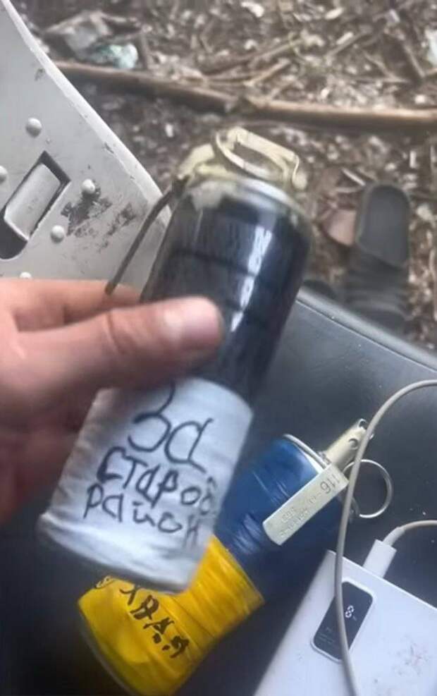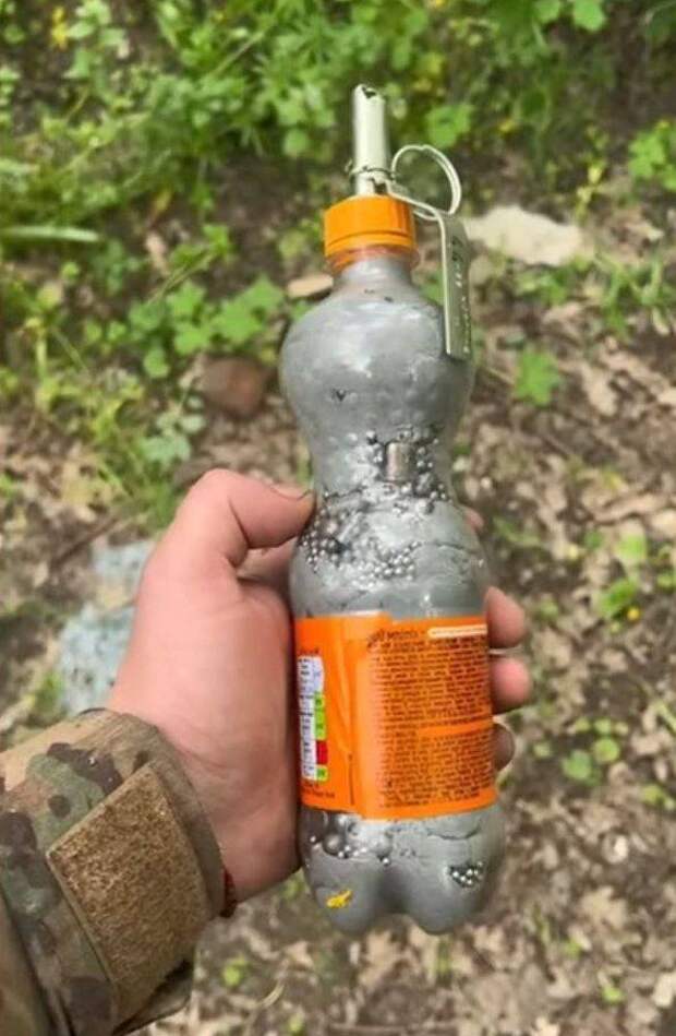На Украине изготавливают гранаты на предприятиях, также осуществляются поставки таких боеприпасов из западных стран, но всего этого недостаточно, чтобы удовлетворить потребности военных. Поэтому украинцы начали изготавливать подобия гранат кустарным способом. Кроме того, боевые действия показали, что мощность привычных гранат (50-110 грамм тротила в зависимости от типа) недостаточная, поэтому вдоль всей линии фронта появились боеприпасы типа «пан сам склепал». Делаются такие боеприпасы разными способами из подручных средств, но самых распространенных вариантов два. В первом случае, берется пластиковая бутылка или алюминиевая банка, объемом 0,5 л. Затем ее «фаршируют» взрывчаткой и поражающими элементами. Вставляется стандартный запал (взрыватель), перематывается скотчем или изолентой и подобие гранаты, больше напоминающее СВУ, готово. Во втором случае, берется аналогичная тара, у которой удаляется дно или горловина. Затем в нее вставляют целую фабричную гранату, заполняют свободное пространство просто поражающими элементами или указанным выше «фаршем». После перемотки изделие можно применять. Причем аналогичные боеприпасы используются и для сброса с БПЛА.