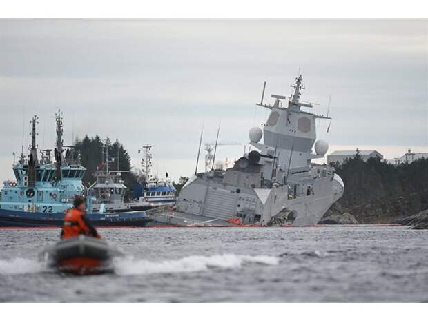 Фрегат «Хельге Ингстад» после столкновения с танкером у берегов Норвегии