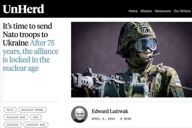 - "Странам НАТО вскоре придется отправить солдат в Украину, иначе они смирятся с катастрофическим поражением. Британцы и французы вместе со странами Северной Европы уже потихоньку готовятся к отправке войск"