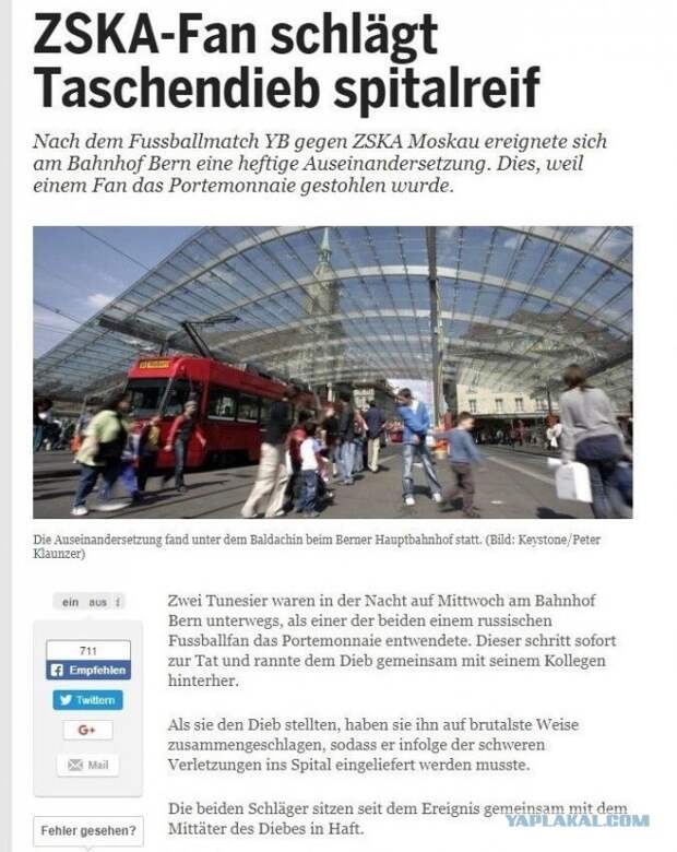 Это каким дураком должен быть вор, чтобы попытаться ограбить русского футбольного фаната. Дайте ему кто-нибудь премию Дарвина.
