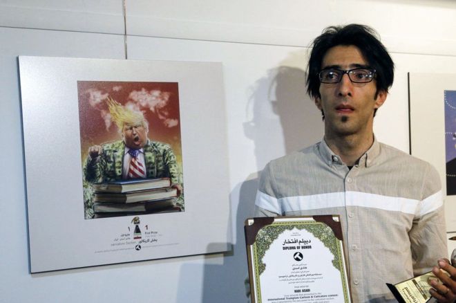 Ирано-американские отношения вряд ли назовешь дружественными. Враждебная риторика лишь усиливается, а санкции Вашингтона против России и Ирана только подливают масла в огонь. Но иранцы хоть и не питают теплых чувств к американцам, зато не прочь посмеяться над ними. Отличным поводом для шуток стал конкурс карикатур под названием «Трампизм», посвященный, как вы уже догадались, президенту США.