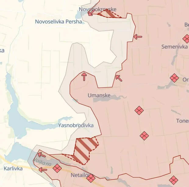 Одновременно портал DeepState просигнализировал, а в первой половине дня 15 июня подтвердил окончательно, что российские войска таки продвинулись к городу Часов Яр в районе села Калиновка, а также на Покровском направлении – у села Яснобродовки и к югу от села Новопокровского. Таким образом, украинские эксперты констатировали успехи подразделений ВС РФ сразу на нескольких направлениях, о которых упоминали перед этим. Следовательно, россиянам удалось закрепиться на новых позициях и ВСУ не смогли их выбить оттуда контратаками.