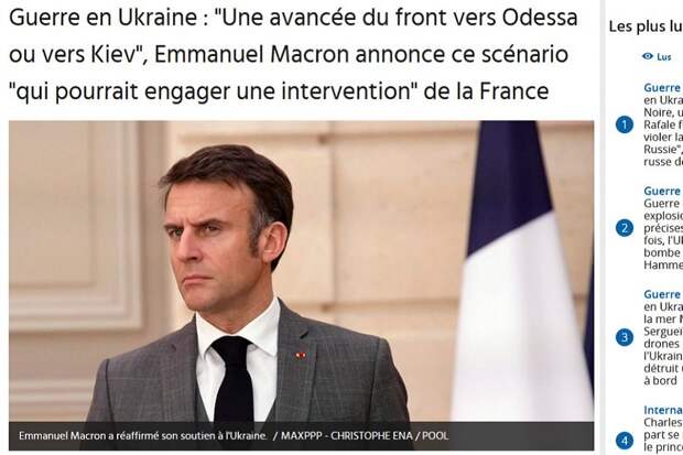 По его словам, Макрон допускал ввод французских войск на Украину, если ВС РФ прорвутся в сторону Одессы или Киева.