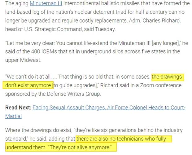 Ядерный щит США, Минитмэны, невозможно модернизировать, потому что