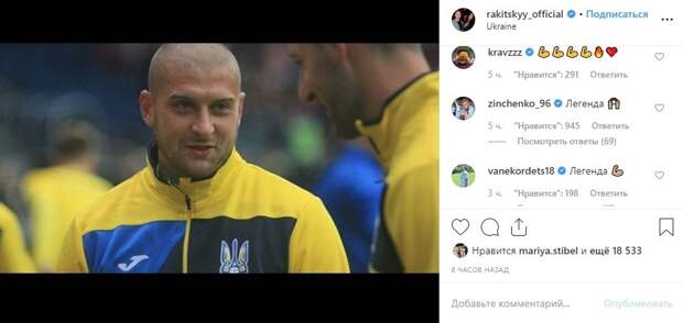 Сообщение с прощанием со сборной «лайкнули» Александр Караваев, Николай Морозюк, Исмаили, Богдан Бутко, Иван Петряк, Тайсон, Евгений Коноплянка, Андрей Пятов и другие, а Александр Зинченко и Иван Ордец, кроме поддержки, оставили комментарии из одного слова - «легенда».
