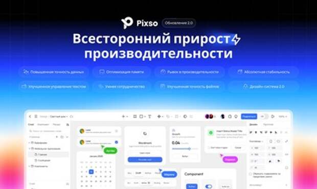 Pixso 2.0 — крупное обновление с переработанной архитектурой для повышения скорости и стабильности: время открытия файлов снижено на 50%, потребление памяти — на 40%, улучшена работа с большими макетами.