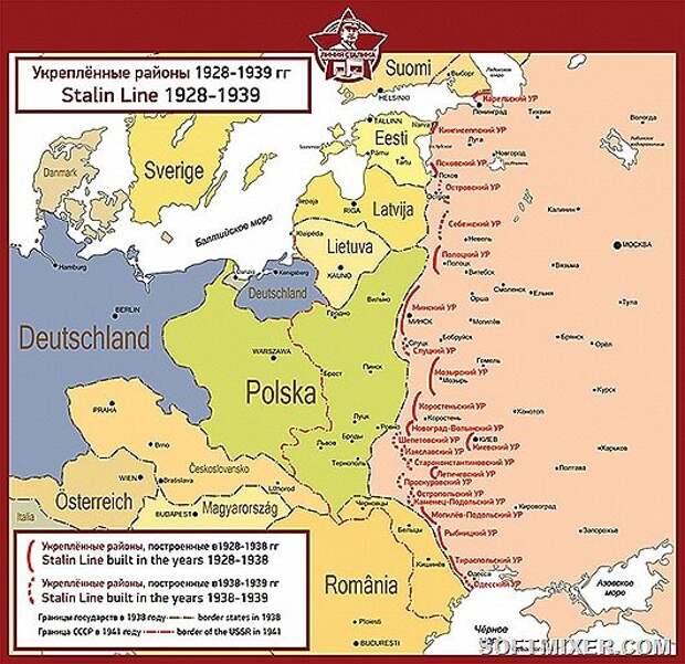 В СССР решили не строить сплошные оборонительные линии, а ограничиться укрепленными районами на угрожаемых участках. Но общее название всем укрепленным районам, на Западе дали – Линия Сталина, как укреплениям на новой границе – Линия Молотова.