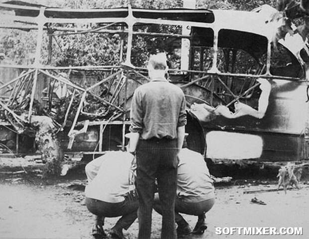 — Когда приехали на место, автобус еще дымился, — поделился своими впечатлениями полковник милиции в отставке Ричард Балясинский. — На дороге лежали обгоревшие, перемешанные с бензином и маслом трупы, на телах полопалась кожа. По обеим сторонам дороги заборы и деревья были иссечены мелкими железными деталями с нанизанными на них кусочками человеческой плоти.