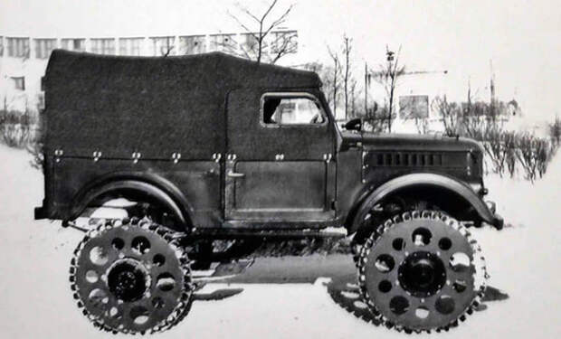 Эксперименты по созданию автомобилей со сверхвысокой проходимостью проходили на нескольких советских заводах. Наиболее удачные эксперименты провели на Горьковском предприятии — конструкторы придумали ряд весьма интересных идей, в числе которых была и машина с фрезерными колесами вместо шин.