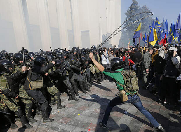 Напомним, 13 июля у здания Верховной рады бушевали радикалы "Правого сектора" (запрещен в России). По словам нардепа Вадима Рабиновича, радикалы провели "репетицию нового госпереворота". Митингующие заблокировали все выходы из парламента, а также бросали в сотрудников правоохранительных органов дымовые шашки и петарды.