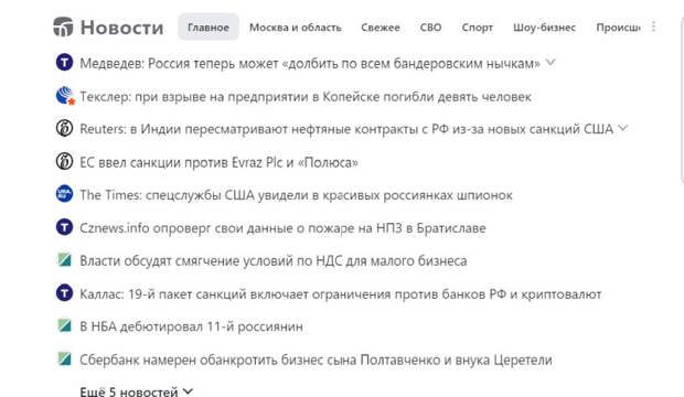 Сравните новостную подборку ниже с топом Яндекса и ответьте, в каком информпространстве вы хотели бы жить — где сплошные санкции ЕС, перепечатки западных СМИ и смакование ЧП? или где видна трудовая жизнь большой страны, главные события государства?