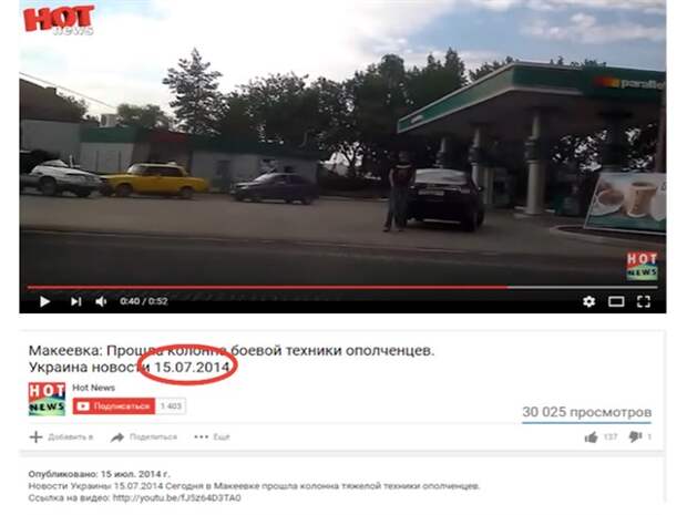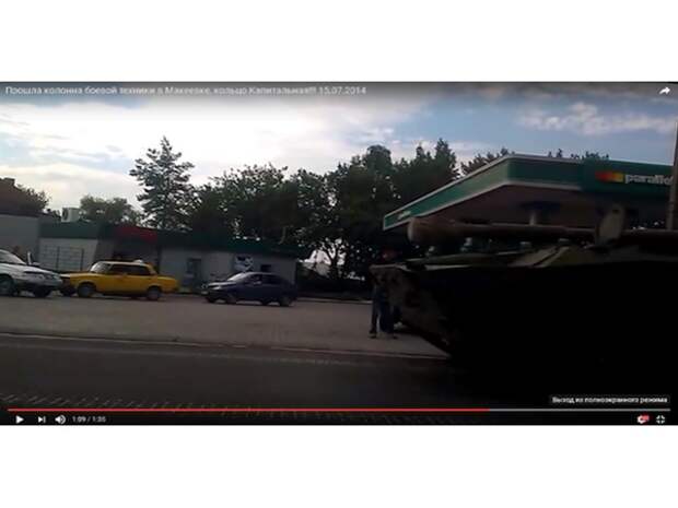 Это подтверждает снятое очевидцами видео движения колонны боевой техники ополченцев на фоне той же самой заправки по улице Автотранспортной, которую запечатлел и видеорегистратор. Видео было выложено на YouTube 15 июля 2014 года.
