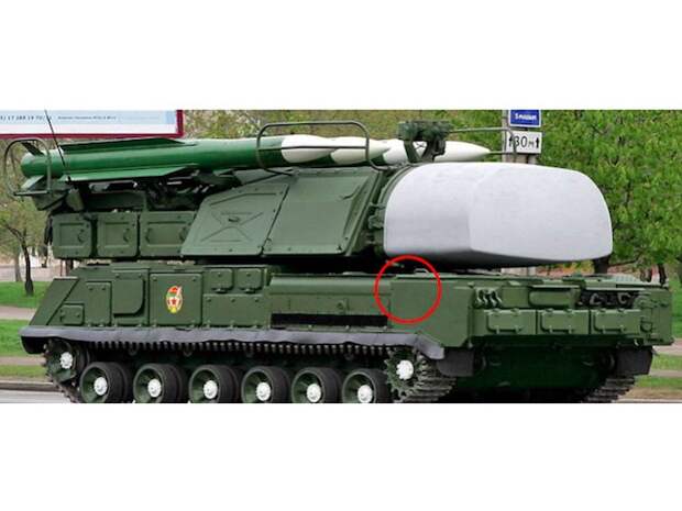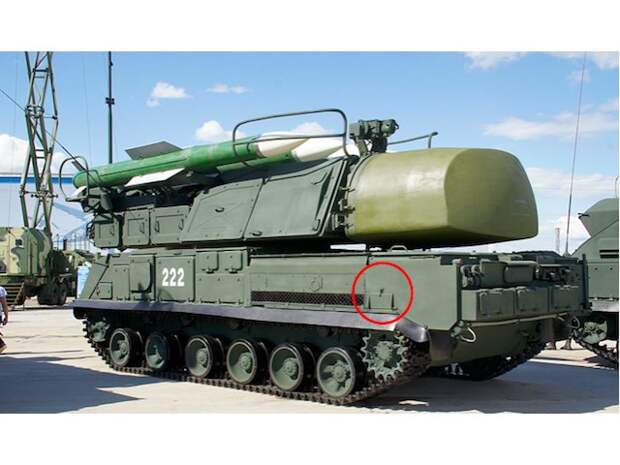 На всех представленных ССГ фото, фиксирующих передвижение колонны 53-й зенитной ракетной бригады по территории России, изображен «Бук» более поздней модификации. Незакрепленная откидная площадка отчетливо заметна на всех кадрах.