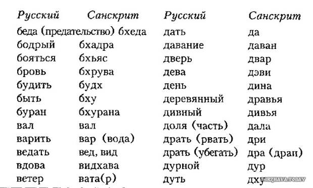 var покрывать, прикрывать; скрывать, прятать; окружать; закрывать дверь; отражать удар; останавливать; сдерживать; предотвращать; подавлять; vara — ограниченное, замкнутое пространство; круг; vara отпор, отражение; varaha кабан, вепрь; vartar m. защитник; varuna nom. pr. владыка вод, божество рек, морей и океанов; океан; рыба; varutar m. тот, кто дает отпор; защитник. Varutha n. доспехи, панцырь, кольчуга; щит; охрана; войско; множество. Таким образом, «варяг” — «охранник”; «наемный воин”. Раннесредневековое русское «варяг” не есть название какого-то народа, а название профессии — от «вара” — «охрана”, «стража”. В.Р.Я.: «…варять, охранять…» (в статье «свора”). Ср. тж. товар tъ varъ санскр. ta vara — «то лучшее”/ «то охраняемое”. См. тж. Ворота.Враг, русск., ср. санскр. rahum. захватчик; nom. pr. демон, к-й проглатывает Солнце и Луну, вызывая этим затмение. «В” здесь добавляется, наподобие как в «утка—вутка”, «огонь—вогонь”. Общее значение слова «враг” — «захватчик” и «тот, кто наносит раны”. См. тж. Рана.