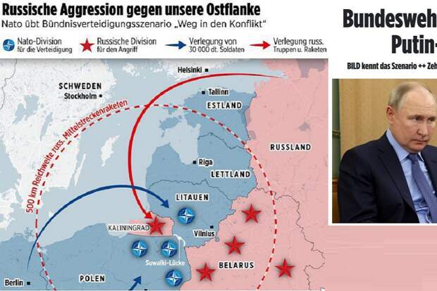 Именно такая «легенда» будет отрабатываться на ближайших военных учениях на восточном фронте НАТО. Гипотетическое отражение нападения России скорее напоминает захватнический поход Гитлера.