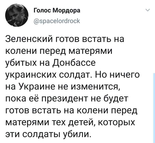 Писали, вызывая уважение — ибо за такое при полунацистком режиме в Киеве вполне можно было загреметь в СБУ, а то и получить нож, или пулю от каких-нибудь отморозков из курируемых Аваковым нацистких бандитов.Особенно впечатлило радостное возбуждение от того, что Зеленский назвал воющих на Донбассе людей «постанцами». Да господи — западные СМИ их так всегда и называют — «пророссийские повстанцы» и положительной коннотации в их публикациях ничуть не прибавляется. Мало того — в документах президента Украины слово «повстанцы» было использовано не раз за эти годы. Это что-то меняет? Вы забыли, как он называл этих самых повстанцев «мразями» и от души со сцены веселил тех, кто расстреливал Донбасс?
