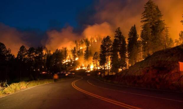 Тайга у нас горит каждый год, ибо дебилы, которые в простонародье именуются "любители свежего воздуха и пикников на обочине", соскучившись за зиму по природе, разводят костры и начинают жечь траву. Чем дело заканчивается, понятно, или надо объяснить? Лес сухой, ибо зимы у нас бесснежные и ясные, трава по пояс - тоже сухая. Очень хорошо горит. И искорками!